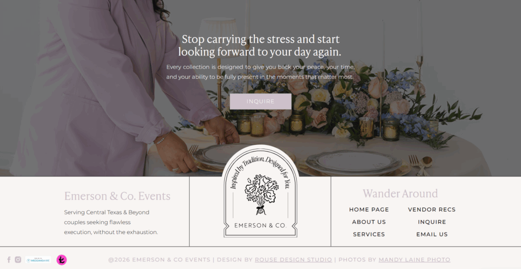 Haley reached out right after officially launching her wedding and event planning business a month earlier (after seven years of dreaming), feeling the pinch of a bare-bones Wix site that wasn’t drawing inquiries or keeping visitors engaged. Based out of Central Texas (Houston area), she books engaged couples, families, and businesses for everything from full weddings to day-of coordination, bachelorette weekends, corporate events, and add-ons like content creation—always with a heart-led, stress-melting approach inspired by her grandmother “Mimi’s” legacy of warmth, service, and thriving in chaos.