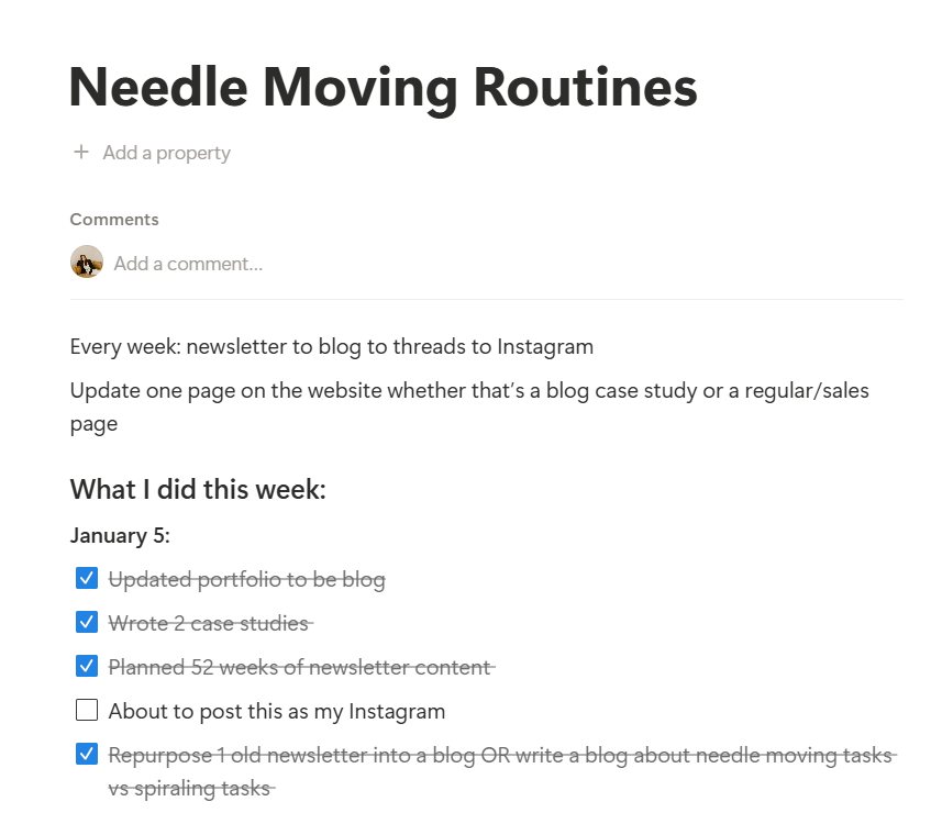 In contrast, needle-moving tasks are the actions that strengthen your visibility, build your authority, or directly connect you to clients. They can feel like busy work too — but here’s the difference: every one of these tasks is strategically tied to growth.
